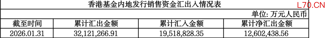 国家外汇管理局的数据显示,截至2026年1月底,香港基金内地发行销售资金累计净汇出金额约为1260.24亿元,连续6个月位于1200亿元之上。