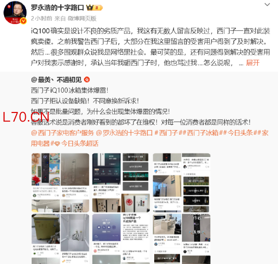 曝光西门子iQ100冰箱大批故障,罗永浩称是“劣质产品”,客服:返修率非常低,自己也用西门子