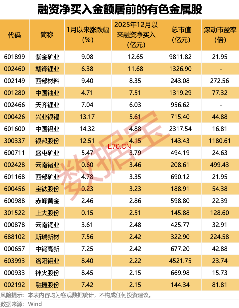 6只有色金属股 获融资净买入均超5亿元