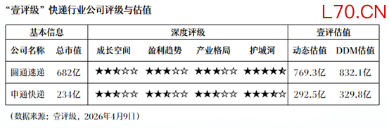 “壹评级”指出,申通快递是快递板块业绩弹性最为突出的核心标的,行业反内卷将直接利好公司盈利能力修复与业绩释放。估值层面,根据“壹评级”动态估值和DDM估值,目前公司估值仍具备提升空间。